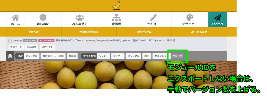| モジュールID | モジュールの名前に【N】が付いているかで判別可能です。 nangokuテンプレートで、初期から入っているモジュールIDの名前には、先頭に【N】が入っています。 ナビゲーションモジュールは、サイト毎に違うので【N】付きの名前であっても、上書き禁止です。 モジュールの名前順で確認する ナビゲーションモジュールだけ表示する |