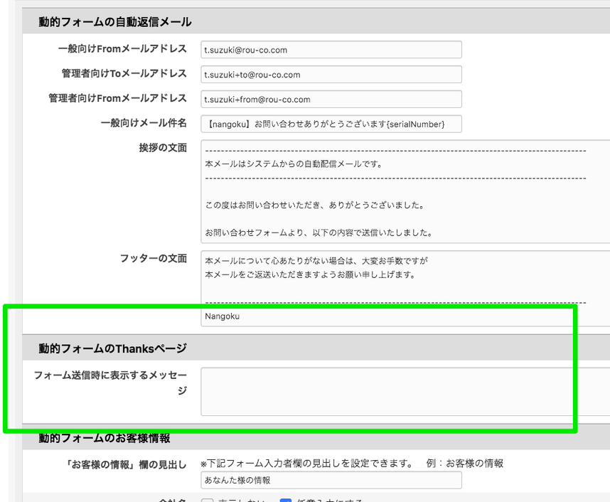 1.thanks画面に表示するメッセージを、カスタマイズ可能に。