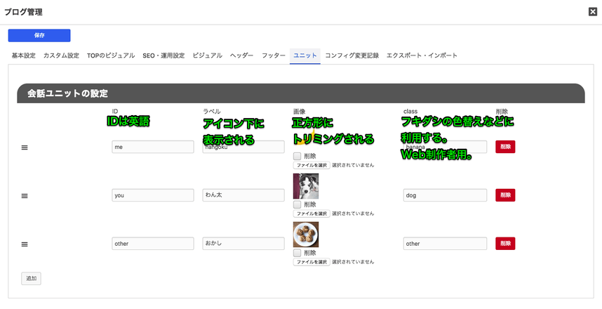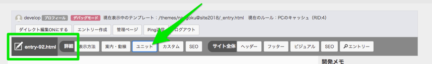 管理メニューに「ユニット」が表示されるので、クリックします。