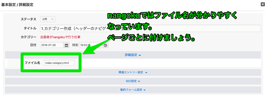 ファイル名はGoogle Analyticsでの確認などに使うので、分かりやすい名前を付けましょう。